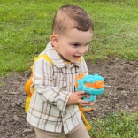 A bájos, szörnyecske mintás hátizsák és a tömlővel összekötött, könnyű pisztoly ideális szett forró napokra a kertben, vízparton vagy nyaraláson. A nagy, 2,1 literes tartály meghosszabbítja a játékot, míg az állítható fúvóka lehetővé teszi a váltást a permet és az erős sugár között. A tölthető akkumulátornak köszönhetően nincs szükség pumpálásra – csak töltsd fel, célozz és spricceld a vizet.