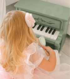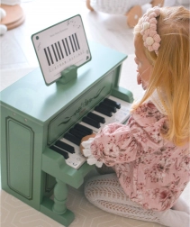 Ez a fa zongorácska több, mint egy játék. Lehetőséget nyújt a gyerekeknek, hogy felfedezzék a zene világát és fontos készségeket fejlesszenek. Kiváló feldolgozása klasszikus dizájnnal és vintage stílussal bizonyítja. Úgy lett tervezve, hogy a 18 hónapos kortól kezdve a gyerekek elkezdhessenek játszani.