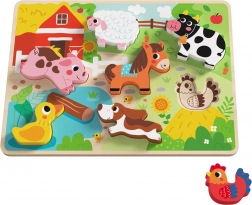 Fedezze fel az első kirakót, amely játékos módon tanítja a gyerekeket a farm állatainak megismerésére. A vastag, 3D elemek jól kézre állnak a kis kezekben, és pontosan illeszkednek a táblában lévő kivágásokba. A puzzle fejleszti a finommotorikát, a logikus gondolkodást és a vizuális észlelést, így ideális az első montessori tevékenységekhez.