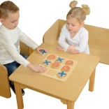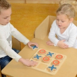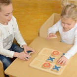 A masszív fa tábla és a nagy X és O elemek tartósak, stabilak és kellemes tapintásúak – tökéletesek a gyerekkezek számára.