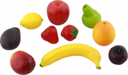 Minden egyes gyümölcs részletgazdag kidolgozású, színeiben és felületében is a valódi terméseket idézi – ideális tanuláshoz és játékhoz.