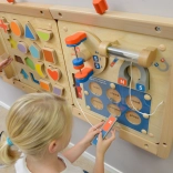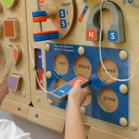 A robusztus fa kivitel ideális otthonra, óvodába és gyereksarkokba. A panel támogatja a Montessori-módszert, fejleszti a logikus gondolkodást, a kéz–szem koordinációt és az érzékelést. A gyerekek biztonságos, könnyen érthető kísérleteken keresztül tanulnak.
