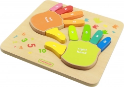 Fedezze fel a tanulás játékos módját a MASTERKIDZ fa ujjszámoló táblával. Két színes tenyér jól jelölt ujjal, számokkal és oldalakkal (jobb/bal) segíti a gyerekeket a számolás alapjainak könnyű megértésében. A minőségi fából készült játék fejleszti a finommotorikát, a kéz–szem koordinációt, és támogatja az első lépéseket a matematikában.
