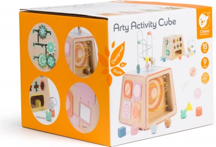 A 6 az 1-ben CLASSIC WORLD fa aktivitáskocka 18 hónapos kortól számos lehetőséget nyújt a készségek játékos fejlesztésére. A minőségi fa kivitel, a nem mérgező festékek és az átgondolt részletek biztonságos és tartós játékká teszik a mindennapi felfedezéshez.