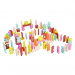 Ez a színes fa dominó készlet hosszú órákra nyújt szórakozást a gyerekeknek. Találsz benne téglalap alakú köveket, medve figurákat, hengereket, kockákat, golyókat, kapukat csengővel és keresztrúddal, valamint egy textil zsákot. A természetes fa és a hat élénk szín kombinációja inspirálja a fantáziát, a pályaépítést és a színes szekvenciákat.