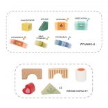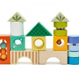 A masszív fa keretnek köszönhetően a kockák könnyen elpakolhatók, és mindig készen állnak az újabb kreatív játékra. A környezetbarát gyártás és a nem mérgező festékek biztonságot és fenntartható anyaghasználatot garantálnak.