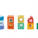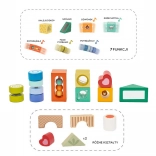 Fedezze fel a kreatív világot a Classic World fa érzékelő kockáival. Ez a 14 darabos montessori készlet fejleszti a finommotorikát, a térbeli észlelést, a kreativitást és a STEM alapokat. A különböző funkciójú, színes formák ösztönzik az felfedező játékot, a válogatást és az építést, miközben a nem mérgező festékek és a tartós fa biztonságos játékot garantálnak. A készlet része egy fa keret az áttekinthető tároláshoz.