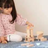 A blokkok egymásra rakása és a madarak egyensúlyozása játékos formában edzi a finommotorikát, a szem–kéz koordinációt és a logikus gondolkodást.