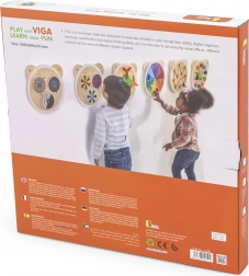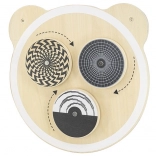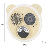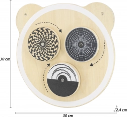 A medvemotívumos fa fali tábla ideális a gyermekek logikai gondolkodásának és képzelőerejének fejlesztéséhez. Három kör alakú elemet tartalmaz, amelyek forgatás közben optikai illúziókat keltenek, és élénk árnyalatú, nem mérgező festékkel van festve. Ez a játék minden gyermeket elvarázsol, és otthonra vagy oktatási intézményekbe egyaránt kiváló választás.