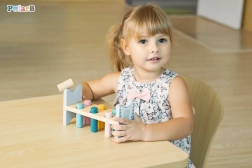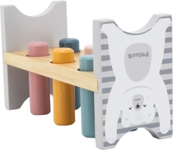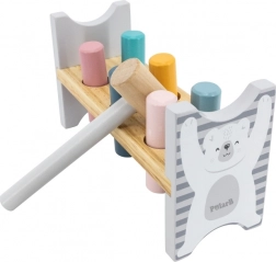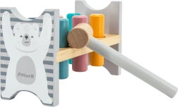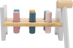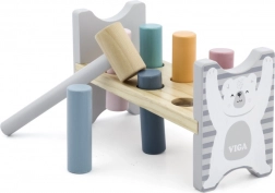 Színes fa pad a VIGA márkától, amelyet úgy terveztek, hogy vonzza és fejlessze a gyermekek koordinációját. A fő feladat az egyes csapok átütése a lyukakon, ami szórakoztató a gyerekeknek és egyben fejleszti motorikus képességeiket.