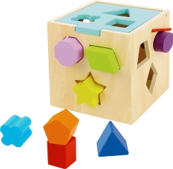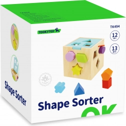 Tooky Toy fa válogató kocka órákon át tartó szórakozást kínál a legkisebbeknek a forma felismerés során. Ez a fa tok hat oldallal rendelkezik, melyek közül négy különböző formájú nyílásokkal van ellátva a 12 színes kocka könnyebb elhelyezése érdekében. Az egész készlet erős és biztonságos a gyermekek számára.