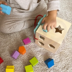 Ez a kocka segít a gyerekeknek fejleszteni a finommotoros készségeiket a formák válogatásán és a kockák megfelelő helyre helyezésén keresztül.