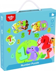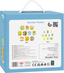 A Tooky Toy fa puzzle-jai ideális segédeszközök a számok tanulásához és a motorikus képességek fejlesztéséhez a gyerekeknél. 20 darabból állnak - 10 számból és 10 számbetét kártyából. Minden darab precízen van festve nem mérgező festékekkel, amelyek biztonságosak a gyermekekre és környezetbarátok is.
