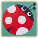 - 6 tevékenység egyben: 4 darabos fa puzzle, húzható kutyus kerekeken, fűzhető gyöngyök fa tűvel és zsákkal, aktív háromszög (formaillesztő, labirintus, fogaskerekek, számláló), forgatható képkockák, képes könyvecske „Small and Big”.
