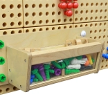 Tartsa a STEM táblán a munkaterületet áttekinthetően és rendezetten. Az átlátszó fallal ellátott fa tároló lehetővé teszi, hogy gyerekek és felnőttek is gyorsan lássák és kiválasszák a szükséges MASTERKIDZ tüskéket, csavarokat és zsinórokat, anélkül hogy távoli dobozokba kellene nyúlniuk. Közvetlenül a táblára szerelhető, így minden fontos dolog mindig karnyújtásnyira van.