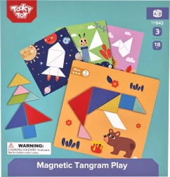 A TOOKY TOY mágneses tangrammal a gyerekek könnyedén raknak ki formákat és képeket az előkészített alapokon. A színes geometriai elemek odatapadnak az alaphoz, így otthon és útközben is kényelmes a használat. A játék fejleszti a képzelőerőt, a koncentrációt és az önálló feladatmegoldást.