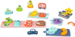 Ez a játék nemcsak szórakoztat, de különböző színes állat-, gyümölcs- és járműformák segítségével oktat.