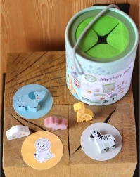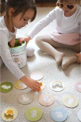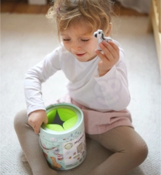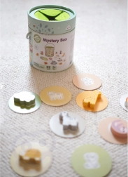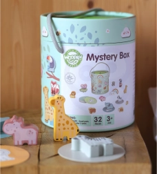 A Titokzatos Doboz játék során a gyermekek választanak egyet a 15 kártya közül, és az érintés segítségével kitalálják, melyik figura rejtőzik a dobozban – közben megtanulják felismerni annak formáját. A játék fejleszti az érintés érzékelését, finommotorikát és koncentrációt. A készlet különféle kreatív játéklehetőségeket kínál, mint a párosítás, színek tanulása, állatnevek és toronyépítés.