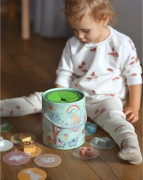 A készlet különféle játéklehetőségeket kínál, beleértve a párosítást, színek tanulását, állatneveket és toronyépítést.