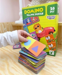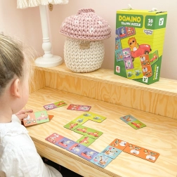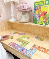 A termék 28 darab dominó kártyát tartalmaz állatillusztrációkkal, amelyeket helyesen kell párosítani.
