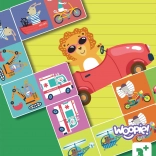 Oktatási játék Állatok a közlekedésben gyermekek számára készült, és támogatja a kognitív, memóriabeli és logikai képességek fejlődését. A játékosok feladata, hogy megtalálják az állatpárokat a járműveken úgy, hogy megjegyzik azok helyét az asztalon. Ez a tevékenység nemcsak a memóriát és a koncentrációt fejleszti, hanem a minták felismerését és elemek párosítását is, ami fontos a matematikai és logikai készségek fejlődéséhez.