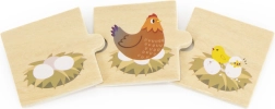 Az elemek bükkfából készültek, nem mérgező festéssel ellátva, így bírják a mindennapos játékot, és a legkisebbek számára is biztonságosak. Összeillesztés közben a gyerekek gyakorolják a finommotorikát, a figyelmet és a képek közötti összefüggések felismerését. Remek közös szülő-gyermek játékhoz és az önálló felfedezéshez egyaránt.