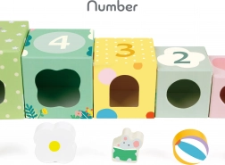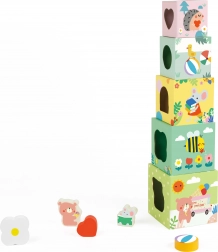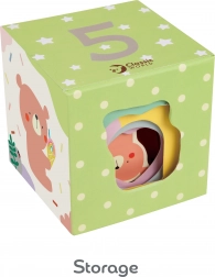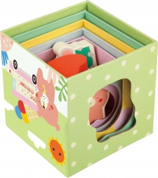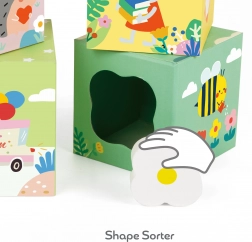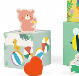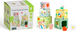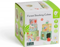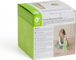 Ez a kockakészlet erdei témájú motívumokkal különböző elemeket, például növényeket, állatokat és rovarokat mutat be, amelyeket a gyerekek felfedezhetnek a kockák különböző oldalain. A kockák magas toronnyá rakhatók vagy alakválogatásra használhatók, ezáltal fejlesztve a gyermek motorikáját és logikai gondolkodását.