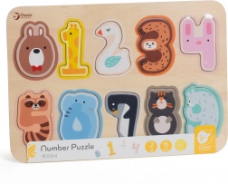 Fa puzzle számok tanulásához a Classic World márkától ideális választás 2 éves kortól gyerekeknek. Segít fejleszteni a kéz- és szemmérték koordinációt, és tanítja a gyerekeket a számokra és állatfigurák formáira szórakozás és interakció révén.