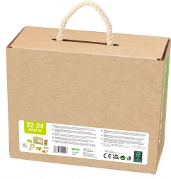 Tartós doboz kötélfüllel és szülői útmutatóval, amely segít a tevékenységek megfelelő időzítésében és tippeket ad a játék teljes élvezetéhez.