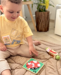 • Párna csatokkal – puha, szenzoros elem különböző záródásokkal a finommotorika és a türelem fejlesztéséhez.