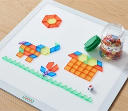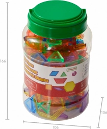 Ezzel a gazdag, 140 átlátszó elemből álló készlettel a gyerekek képeket, mintákat és mozaikokat raknak ki, ismerkednek a geometriával és felfedezik a szimmetriát. 6 forma áll rendelkezésre (hatszög, négyzet, trapéz, háromszög, rombusz és paralelogramma) 6 élénk színben, amelyek a végtelen kreativitásra ösztönöznek.