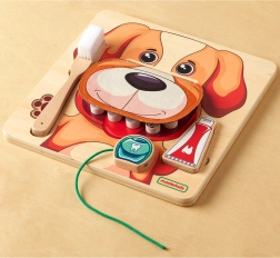 Ismertesse meg a gyerekeket az egészséges szokásokkal játékos módon. A kutyus motívumú tábla nyitható szájjal és 10 valósághűen ábrázolt foggal rendelkezik, amelyeket a kis fogorvosok a mellékelt eszközökkel tisztíthatnak. A szerepjátéknak köszönhetően a gyerekek természetes módon sajátítják el a helyes fogmosási technikákat, és könnyebben rögzül a napi rutin. A Montessori szemlélet jegyében az eszköz támogatja az önállóságot, a koncentrációt és a játékos tanulást.