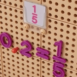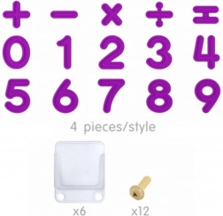 Ez az átfogó készlet a játékos és áttekinthető alap-matematika oktatására készült. A lila elemek első pillantásra felkeltik a gyerekek figyelmét, és a nagyobb méretnek köszönhetően könnyű velük dolgozni. Tökéletesen illeszkedik a MASTERKIDZ fali és asztali STEM panelekhez, és segít magabiztosságot építeni a számokkal és az egyszerű egyenletekkel végzett munkában.