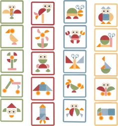 Tíz kétoldalas kártya 20 motívummal az egyszerűtől a haladóig – ideális a készségek fokozatos fejlesztéséhez.