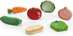 A zöldség alakú elemek nemcsak a táblába illeszthetők, hanem önálló figuraként is használhatók a konyhás vagy tematikus játékokhoz – még több móka és kreativitás egyben.
