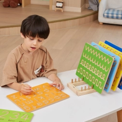 Az állvány praktikus pálcákkal van felszerelve az egyes lapok stabil behelyezéséhez, így minden tábla vagy puzzle a saját helyére kerül. Akár 10 darabos kapacitása megkönnyíti a játékok és tevékenységek rotációját, valamint lehetővé teszi a hatékony rendszerezést és az attraktív prezentációt.