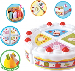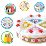 A kerek torta szeletekre bontható, és késsel, spatulával és tányérral tálalható – tökéletes a finommotorika és a megosztás gyakorlásához.
