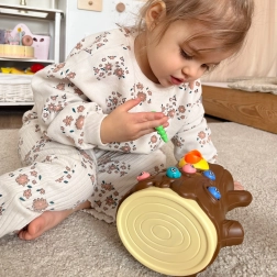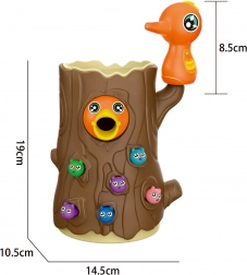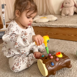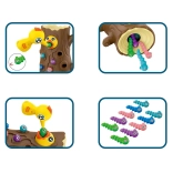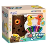 A mágneses csőrű harkály a nyílásokban rejtőző kukacokat fogja ki – közben a gyerekek gyakorolják a finommotorikát és a mozgáskoordinációt.