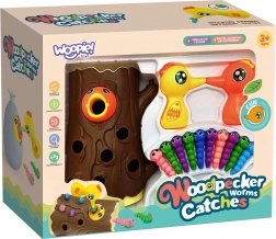 A WOOPIE márka szórakoztató mágneses játéka fejleszti a gyerekek ügyességét és koncentrációját. A feladat, hogy a mágneses csőrű harkállyal kihúzzák a rejtett kukacokat a törzsből, majd visszahelyezzék őket. A játék ideális két gyermek közös játékához, támogatja a finommotorikát, a kéz–szem koordinációt és a türelmet. A csomagban 2 harkály, egy törzs madárkával és 10 színes kukac található.