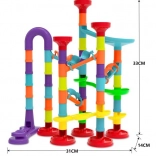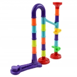 A kreatív WOOPIE golyópálya-építő készlet ideális játék a kíváncsi gyerekeknek. A színes elemeknek és a különböző formájú csöveknek, tölcséreknek és kanyaroknak köszönhetően a gyerekek könnyedén összeállítják saját egyedi pályáikat, és figyelhetik, ahogy a golyók egymás után száguldanak.