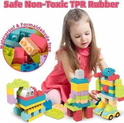 Az építőkészlet 3 éves kortól ajánlott és matricákat tartalmaz a kockák dekorálásához. Ezen kívül a kockák segítik a motoros képességek fejlesztését és megtanítják a formák és színek felismerését.