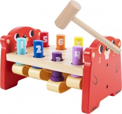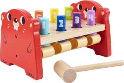 A Tooky Toy fából készült kalapácsos játéka ideális játék a 12 hónaposnál idősebb gyermekek számára. A fa kalapács segítségével a gyerekek színes csapokat ütnek be, amely pontosságot és ügyességet tanít, ami alapvető előkészítés olyan jövőbeli készségekhez, mint az írás. A csap, amint beütötték, azonnal újra kiugrik, ami végtelen szórakozást biztosít.