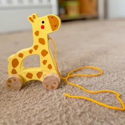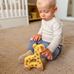 A zsiráf felelősen beszerzett fából készül, biztonságos festékekkel színezve. A húzós játékkal való játék természetesen fejleszti a koordinációs képességeket, az egyensúlyt és a koncentrációt, valamint ösztönzi a járást és az aktív mozgást.