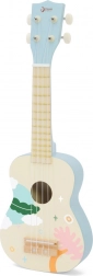 Ez a kék, fából készült ukulele remekül utánozza az igazi hangszert, és tökéletes a zenei világba tett első lépésekhez. A gyerekek elsajátíthatják az alap akkordokat és a ritmust, tarthatják első otthoni koncertjüket, miközben fejlődik zenei érzékük és önkifejezésük. Felülete nem mérgező festékekkel lakkozott, szerkezete tartós anyagokból készült a hosszú élettartamért.