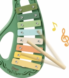 A hangszerek lakkozott fából készülnek, méreganyag-mentes festéssel. Az ergonomikus formák könnyen illeszkednek a kis kezekbe, és támogatják a finommotorikát, a ritmusérzéket és a zenei önkifejezést. Ideális közös családi szórakozáshoz és az első otthoni zeneórákhoz.