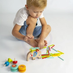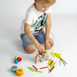 A játékok minőségi fából készülnek, nem mérgező festékekkel vannak színezve, így gyermek- és környezetbarátok. A szálkamentes, sima felületnek köszönhetően a kisebbek számára is biztonságos, és támogatja a motorika, a pontosság és a koncentráció fejlődését.