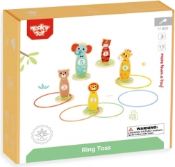 A szett 5 aranyos, állatformájú, 1–5-ig számozott fa célt és 5 színes karikát tartalmaz. A játék gyorsan előkészíthető, könnyen hordozható, és kiváló családi pillanatokhoz, gyerekzsúrokhoz vagy önálló játékhoz. A biztonságos, simára munkált fa és a nem mérgező festékek a TOOKY TOY filozófiáját tükrözik – minőségi és tartós játékok a mindennapi használatra.