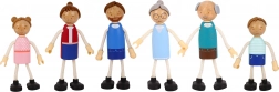 A készlet hat mozgatható végtagú családi figurát tartalmaz, amelyek ösztönzik a szociális készségeket és a kreatív játékot.