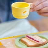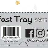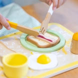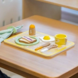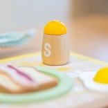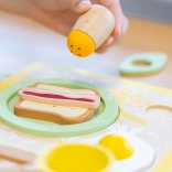 Engedje, hogy gyermeke elmerüljön a meghitt és kreatív játékban a Classic World fa reggelizőkészletével. Ez a szett nemcsak rengeteg játéklehetőséget kínál, hanem segít a szociális készségek és a helyes étkezési szokások fejlesztésében is. 3 éves kortól ajánlott; tartalmaz tányért, evőeszközöket, bögrét, sót, borsot, tojást, pirítósokat, egy szelet szalonnát, szalvétát és tálcát.