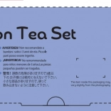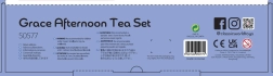 A készlet tartalmaz egy nagy tálcát, csészealjakat a csészékhez, teáskannát, csészéket, kanalakat és desszerteket.
